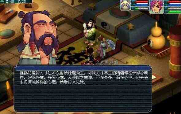 15、来到方寸山找到菩提,他会要求你先除掉自己的心魔。按任务提示找到心魔,需要战斗,但是却战胜不了心魔。