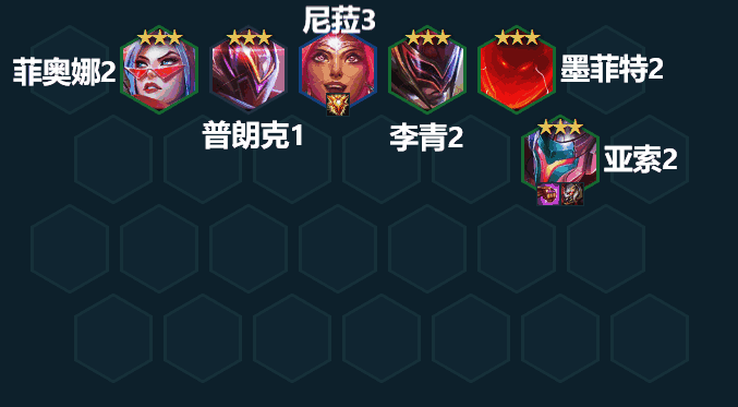 阵容组成:菲奥娜、普朗克、尼菈、李青、墨菲特、劫、亚索、薇恩(天使如果3星就用天使替代薇恩)