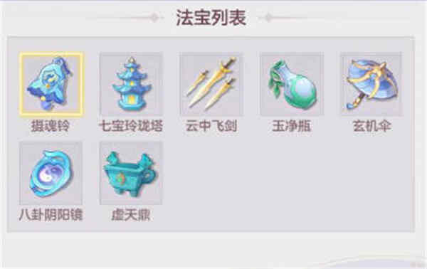 2:物攻门派的话,比较推荐云中飞剑,物理攻击的时候有一定的概率触发飞剑攻击,攻击次数越多触发概率越高,还有玄机伞,有概率减免受到的伤害,防御选择必备,虚天鼎,使用之后减速一名敌方单位,可以给我们封系争取一速;