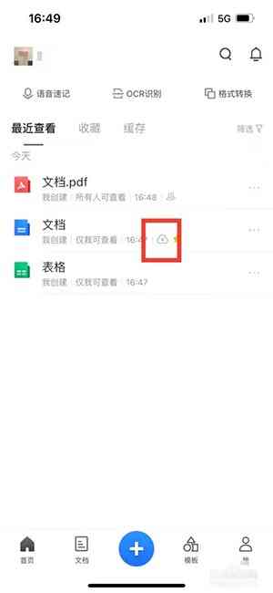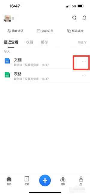 1、在首页选择文档后面的三个点图标。