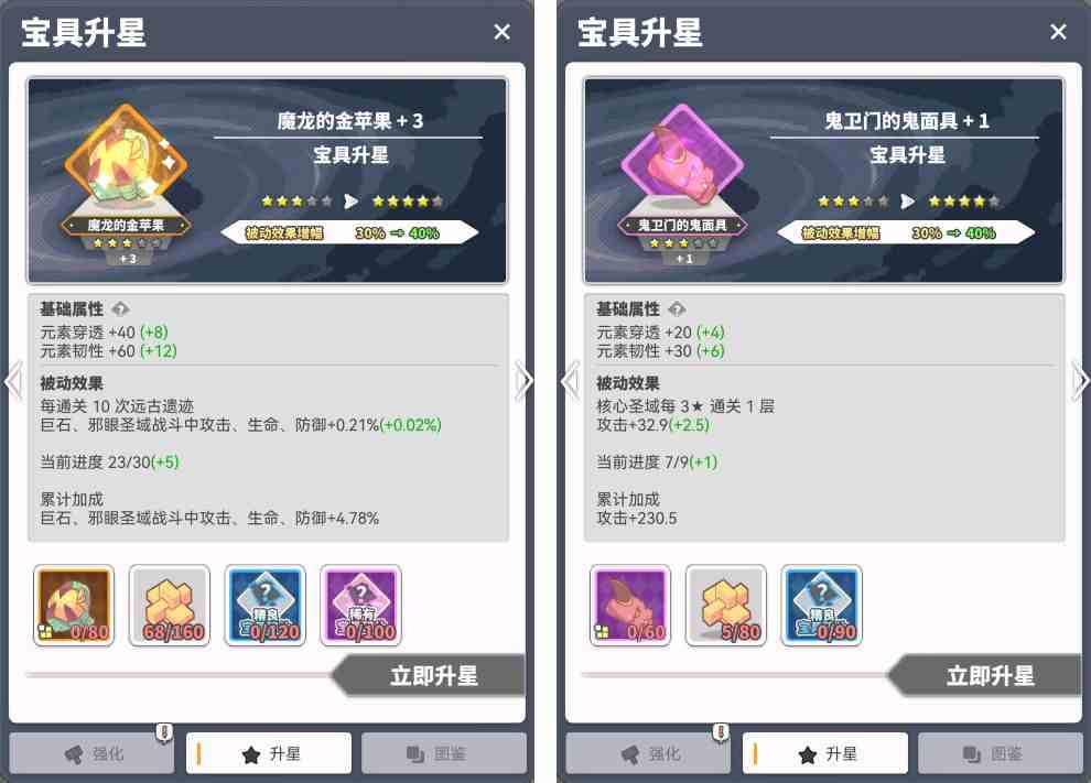 稀有宝具升星(提升宝具基础属性和被动效果):