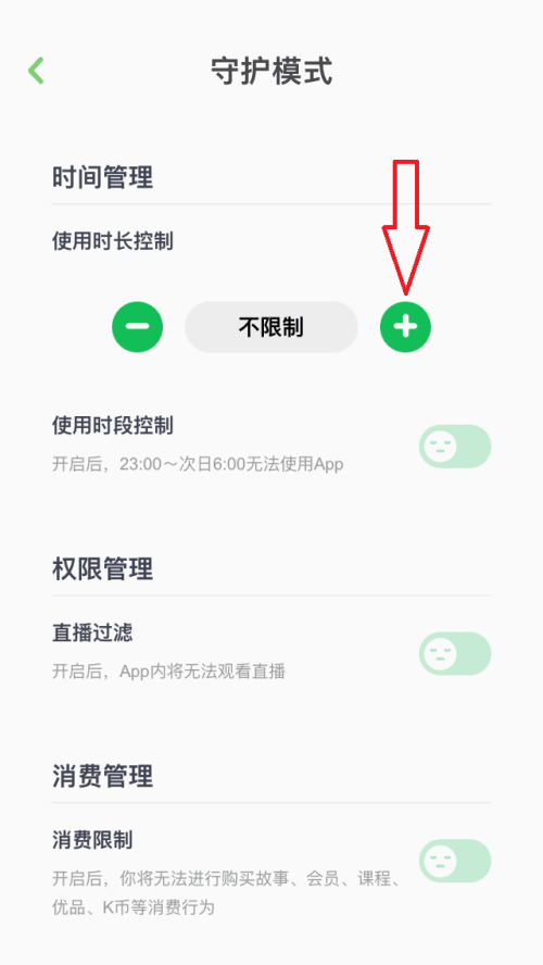 3、接着进入到守护模式页面,点击以下位置处的+符号;