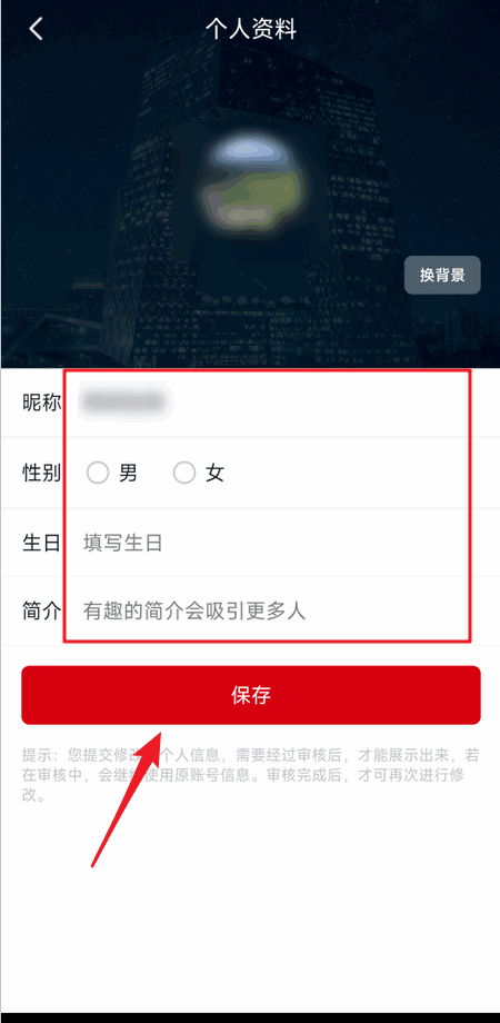 4、最后在【个人资料】界面上即可编辑个人信息。