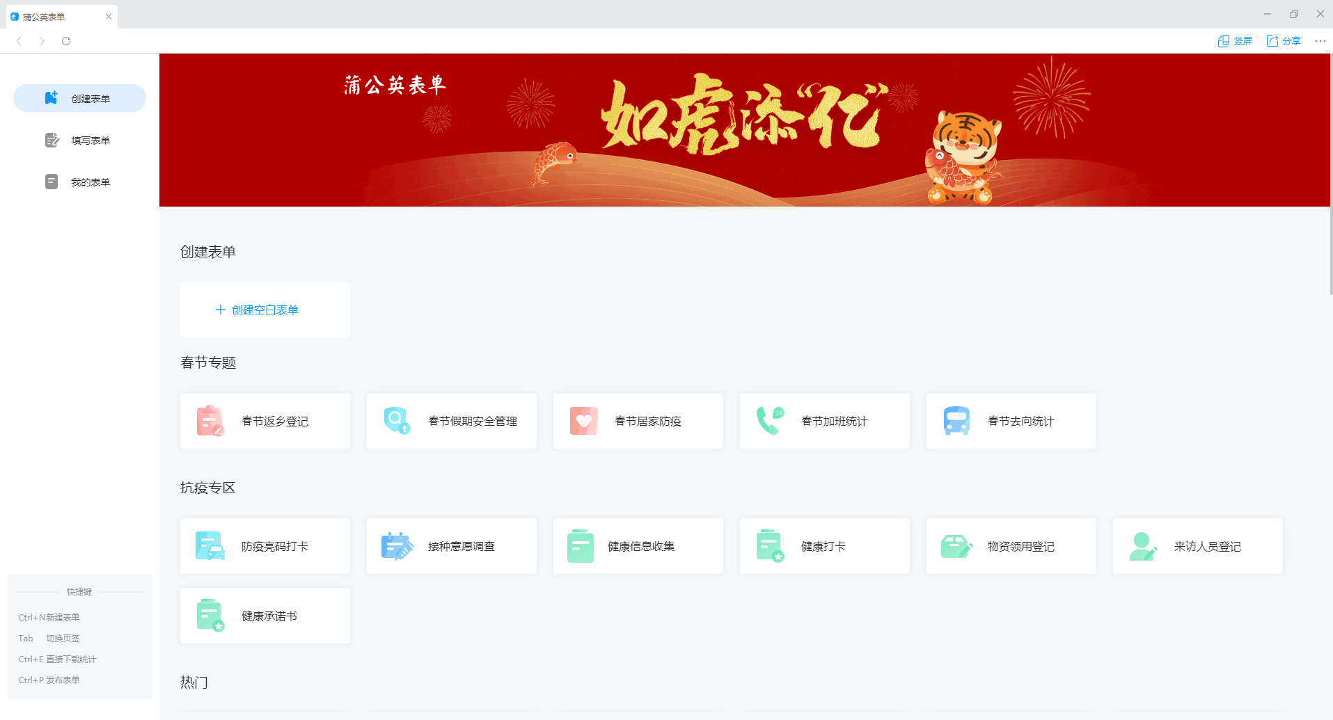 2、进入主页面,点击“创建空白表单”。
