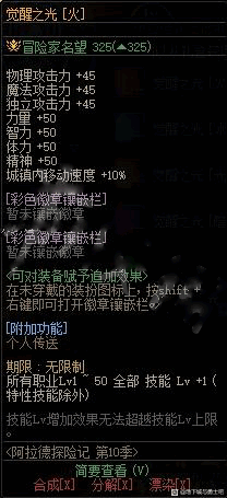dnf阿拉德探险记第十季60级可以获得光环,光环为觉醒之光,属性可以见上图。