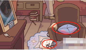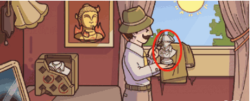 2、然后拿起茶壶拽到侦探身上侦探就会起来,我们就能获得眼镜和坐垫。