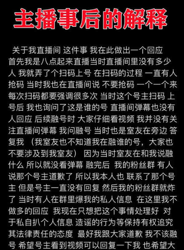 4:经过长时间的发酵,这个主播被网友声讨,表示不管是恶意抢号还是刚进直播间不知情,都不至于把人家号给毁了,最后主播把自己的账号设置成私密,但是在粉丝群还是有很多的声音的;