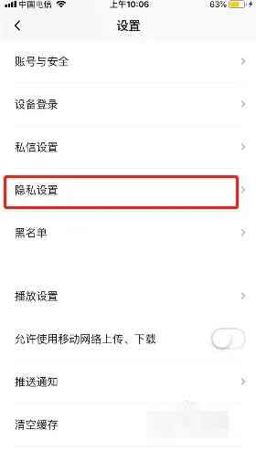 2、点击【隐私设置】进入。