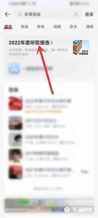 2、进入搜索页,点击上方“2022年度听歌报告”图标。