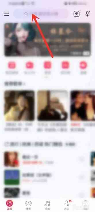 1、打开网易云音乐APP首页,点击上方搜索框,搜索“听歌报告”。
