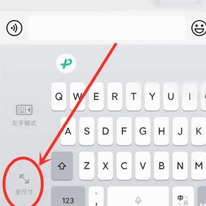 3、进入到单手模式,点击键盘左下角“全尺寸”图标,即可关闭单手模式。