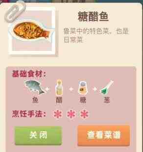 糖醋鱼配方:鱼+糖+醋+盐+油+葱花。