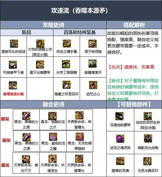 【配装特点】改版后崛起的固伤伤害顶级搭配,强度高,刷自定义或更改腰带需要一定成本,手感良好