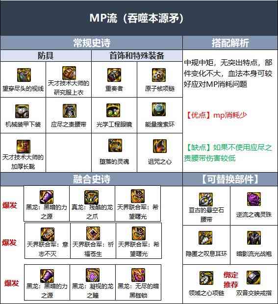 【配装特点】中规中矩,无突出特点,部件变化不大,血法本身可较好应对MP消耗问题