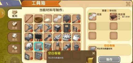 - 打开工具箱,准备制作空白卷轴。