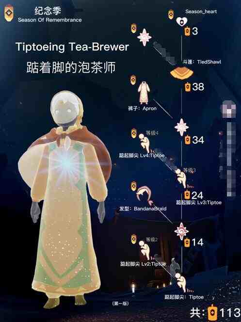 5、踮着脚的泡茶师,兑换所有的物品需要113个季节蜡烛。