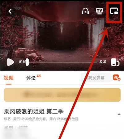 2、点击视频右上角小窗图标,(在这IEfans兔叽下载站小编选择是乘风破浪的姐姐第二季)