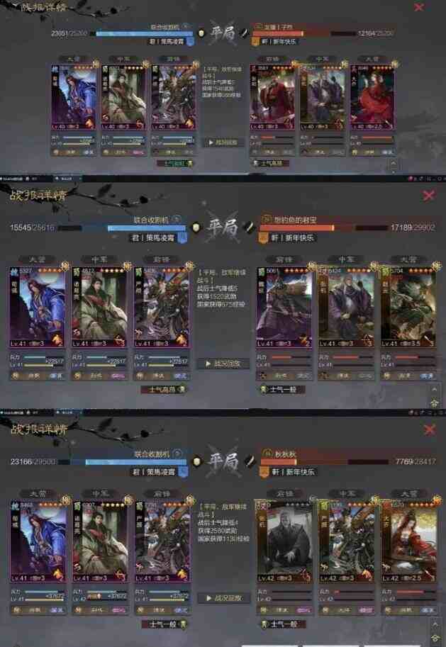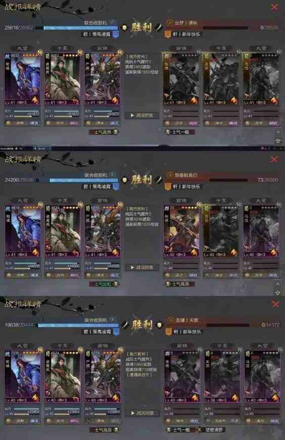 - 现在一般前三队就是一垒实二蜀骑三法刀,现在大家都是刚刚做出二队,部分人做出了三队,所以战场上法刀比较少,暂时还没有打法刀的战报,只能稍等几天我再补。