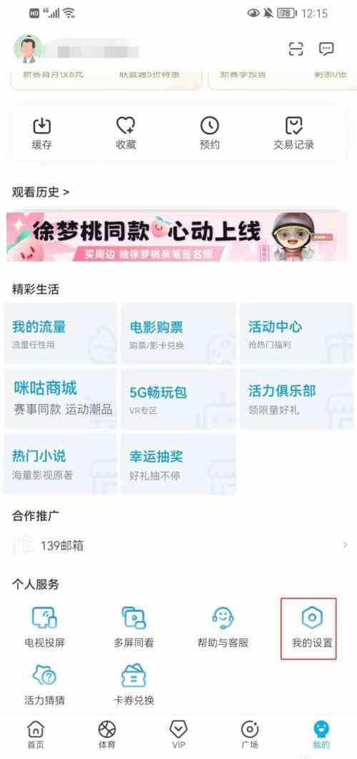 首先打开 咪咕视频 软件,选择 我的 点击右下角的 我的设置 选项