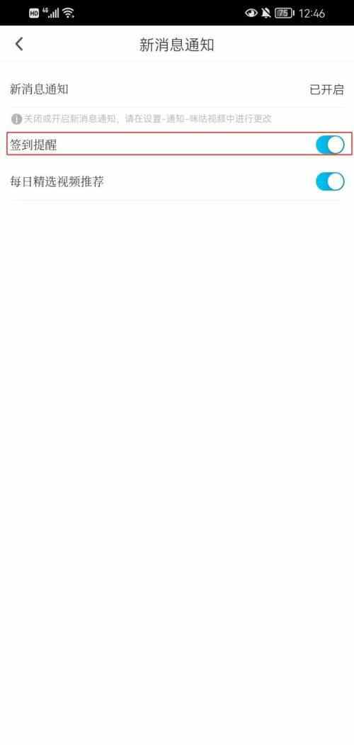 最后打开 签到提醒 后侧的开关即可完成操作