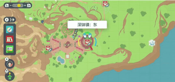 1、打开地图之后找【深钵镇:东】的草系道馆,然后传送过去;
