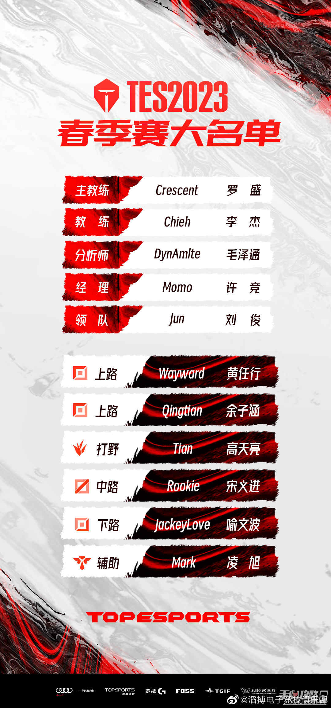 具体TES战队大名单如图所示