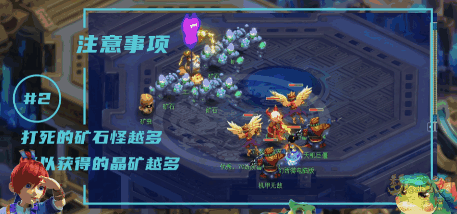 首先需要掌握的采集技巧,采集矿石需要三人组队,击败的矿石怪物越多,所采集的矿石也就越多,如果直接击败土地公(主怪),则只能获得一枚矿石。所以,为了效率最大化,建议大家优先清理小怪,待土地公召唤满三次后在清场,保证矿石产出最大化。