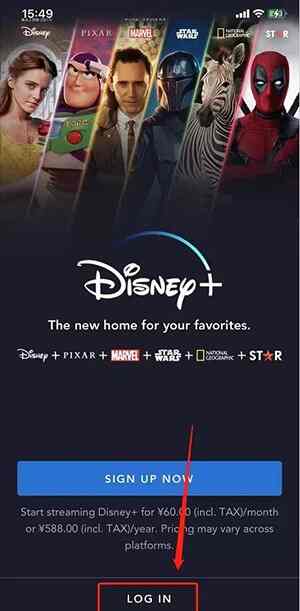 1、打开Disney+点击「登录LOG IN」