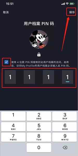 8、打勾后输入「4位PIN码」再点击「保存」