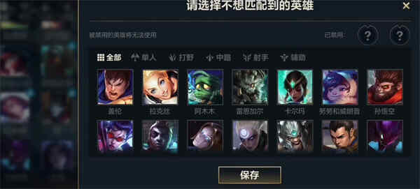 5:在这里你可以随意的选择英雄,你还能选择不想匹配到的英雄,只要你选择了,那么就不会给你匹配对应的英雄玩家了;