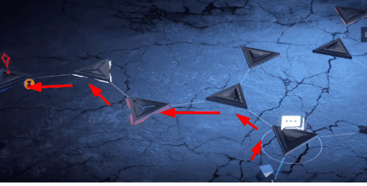 - 然后我们要继续向上来到第二处污染源,在这里按照如图所示的走法来到图中感叹号位置。