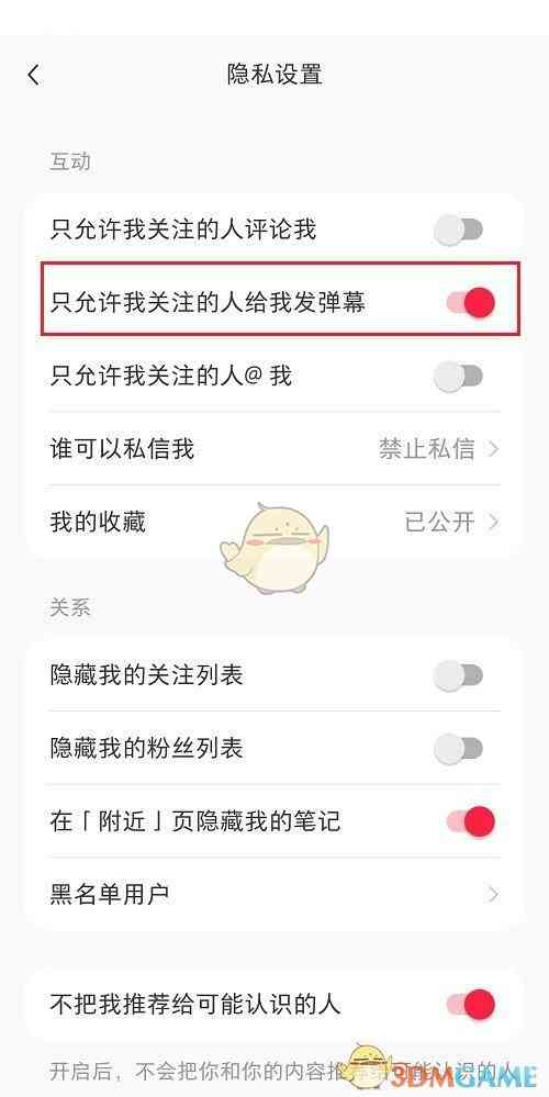 小红书关注的人可发弹幕设置方法