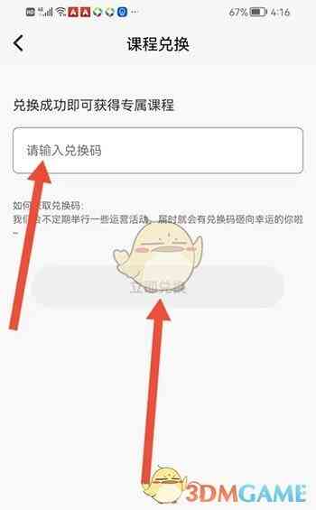 - 进入课程兑换界面,然后输入兑换码,点击 立即兑换 即可。