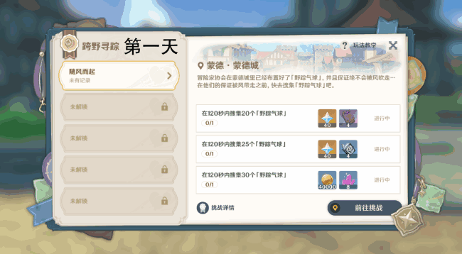 游家吧小编带来了原神跨野寻踪第一天攻略:需要旅行者们在不同的越野路线中去搜集更多的[野踪气球],气球越多,更多有关游戏的相关内容请关注。
