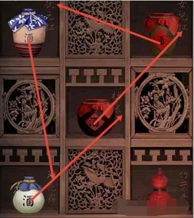 2、用酒杯挨个品尝架子上的酒,然后与一楼的本店招牌进行对比,将酒摆放在正确的位置上。