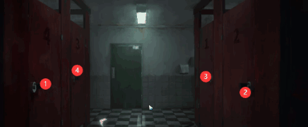 4、每个假人特征和手势解开唱片机密码,密码是3124。