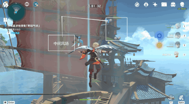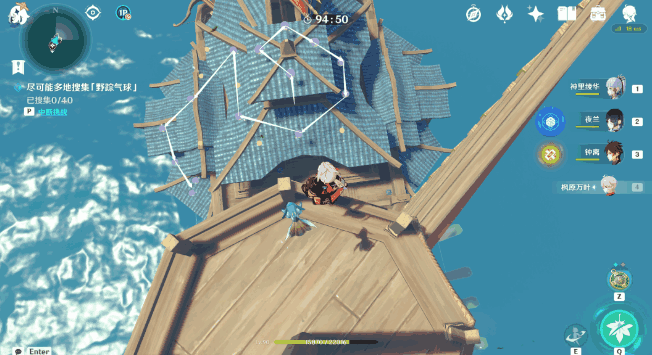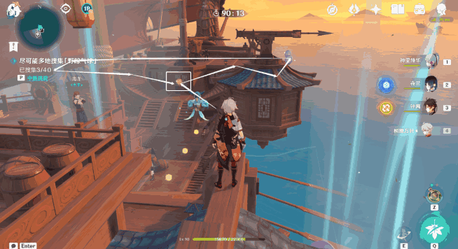 2、往东北方飞,按照指引,搜集气球,去到侧面的船屋顶。