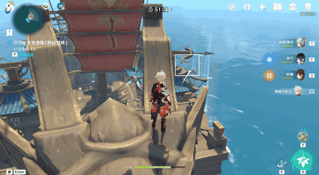 1、往西南方向下飞,根据指引,使用罗盘,搜集气球,前往船头。
