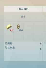 加工木杆所需的小刀可以是石刀,需要一块燧石以及一根草绳,燧石可以在地面拾取,也可以通过挖取燧石矿获得。