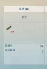 草绳的制作需要三个草,草可以直接从地面上拾取获得。