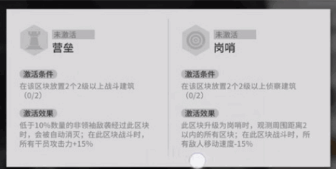 升级条件:玩家需要在一个区域内建造2个2级以上的战斗建筑(其实二级也行),就可以升级激活一个营垒。