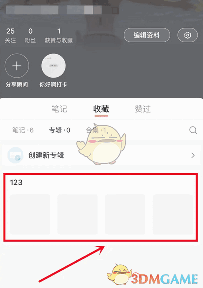 - 打开小红书我的页面,找到收藏,点击专辑,再点击创建新专辑。