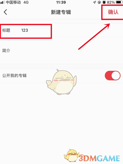 - 进入页面,填写专辑名称,点击确认。