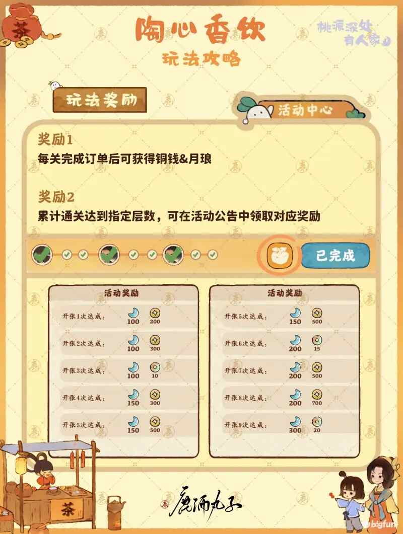 在每关规定的时间内尽可能多的完成订单,可获得更多铜钱和月琅