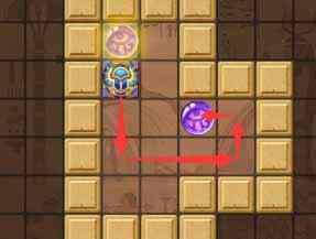 - 向下走一格将下方的珠子向右推一格。
