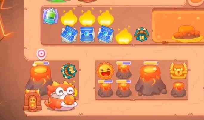- 之后在放置一个毒针、一个太阳和一个桶子之后,锁定左边的火山。