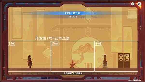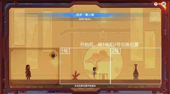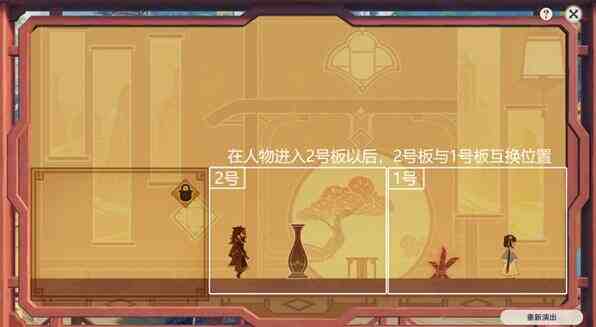 这一场中人物所在板块是无法移动的。在演出开始后,拖动1号板,与2号板互换位置。
