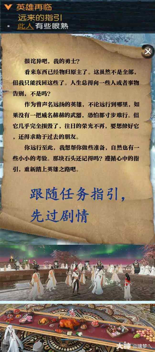 - 1月24日之后,点击 英雄再临 任务自动寻路至桃溪村(650.510),先跟着剧情走,然后要收集三件武器碎片之后才能完成最终任务!