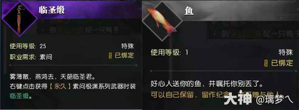 - 任务奖励:“鱼别丢”、 极渊 系列永久武器外观(可进阶)