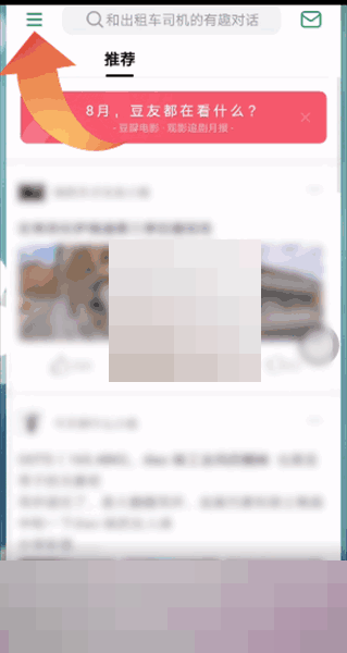 - 首先打开豆瓣APP,进入到首页界面后点击界面左上角的三横图标。